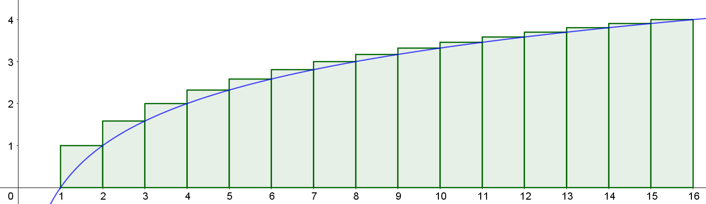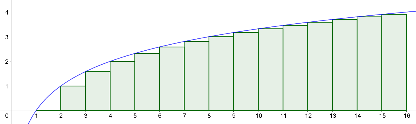 $$ \sum_{k=1}^{n} \log k \geqslant \int_{0}^{n} \log x \mathrm{d}x $$积分求和的下界