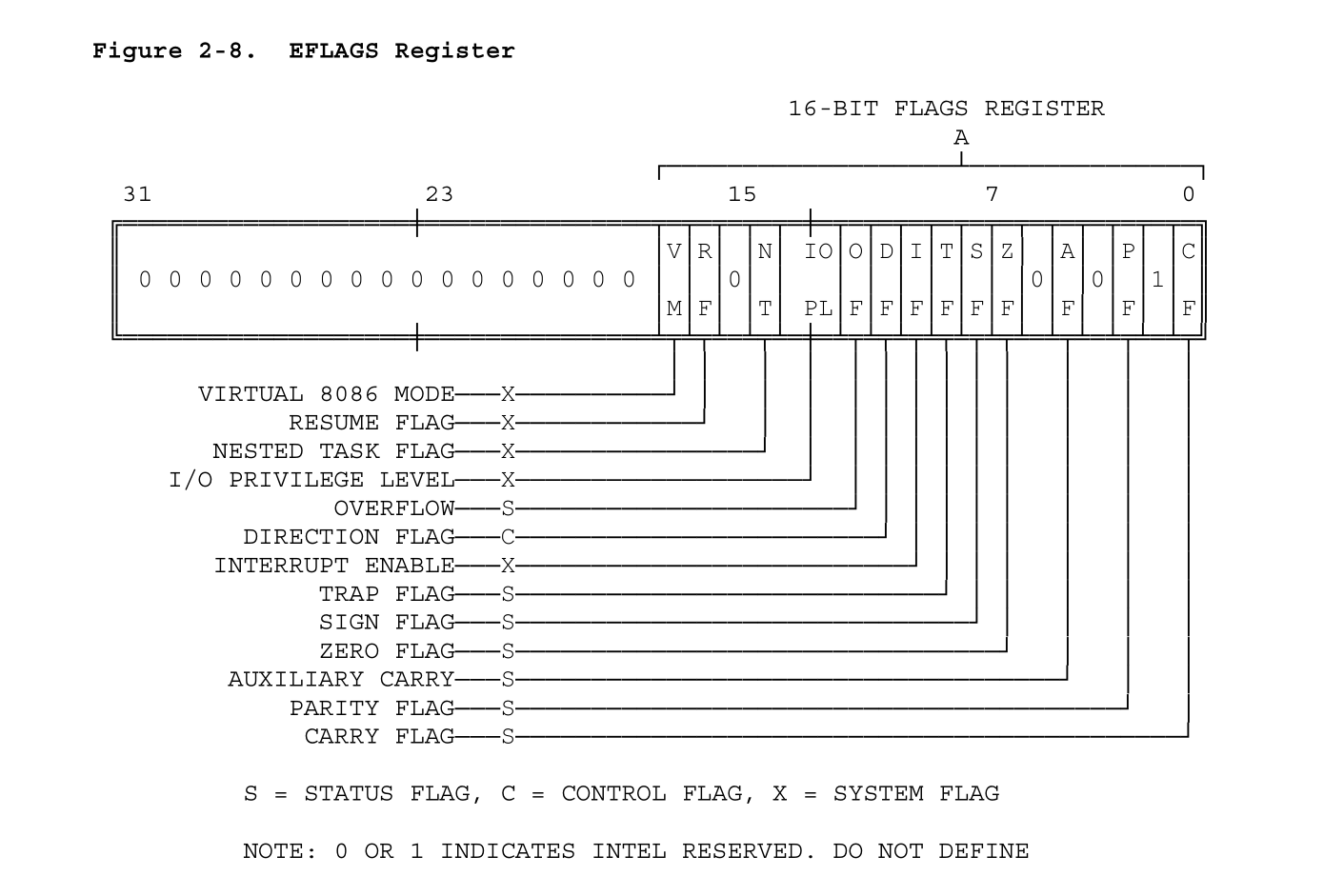i386手册里P34页中和参阅附录c提到,CF是进位标志。