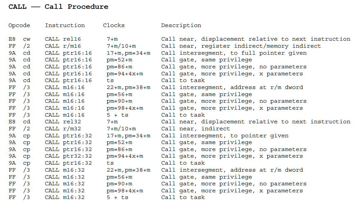 查找call指令对应的Opcode等信息,可知操作码为e8。