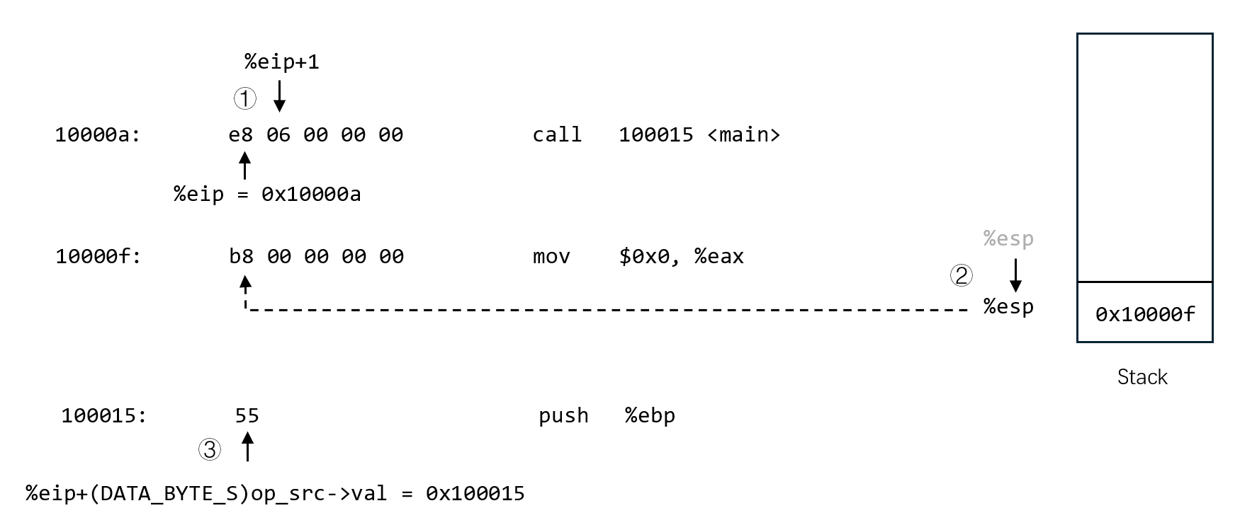 16 print_asm("call: 0x%x", cpu.eip + len + 1);
