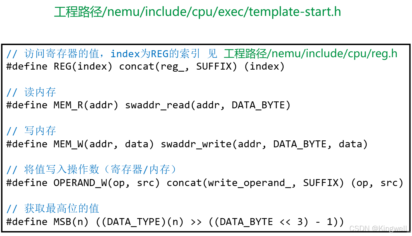 ① 在文件头尾分别包含cpu/exec/template-start.h和cpu/exec/template-end.h。