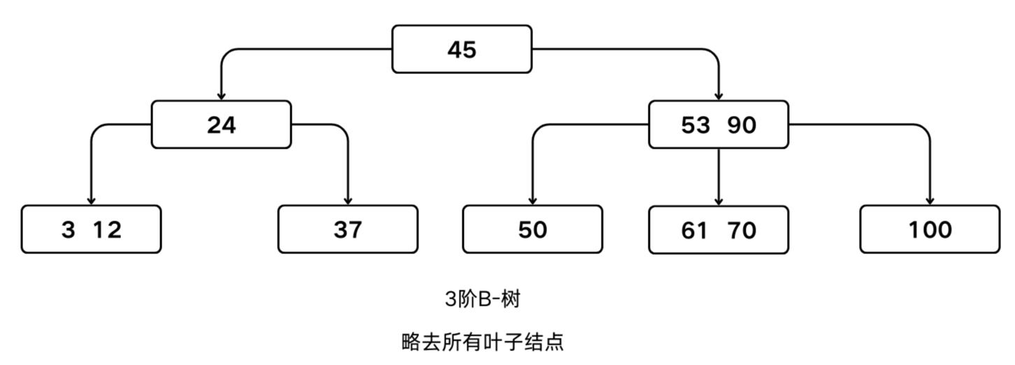 一棵 $m$ 阶B-树每个结点最多有 $m$ 棵子树,$m–1$ 个关键字,最少有 $\lceil m/2 \rceil$ 棵子树, $\lceil m/2 \rceil –1$ 个关键字。
